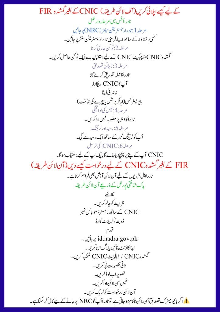 Apply for Lost CNIC Without FIR in Pakistan NADRA also provides an online option for eligible citizens.