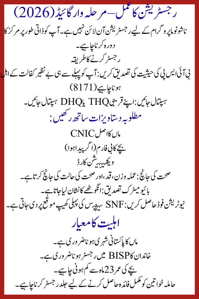 The Benazir Nashonuma Program Center 2026 is a powerful step toward a healthier Pakistan. It not only provides financial help but also ensures proper nutrition and medical care for mothers and young children. If you are already a BISP beneficiary and meet the criteria, visit your nearest DHQ or THQ hospital today and secure a better future for your child.