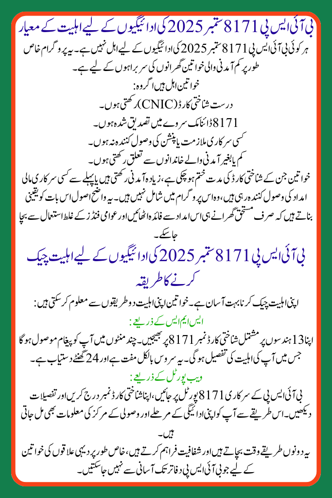 Timely Payments for Women in BISP 8171 October 2025 Update