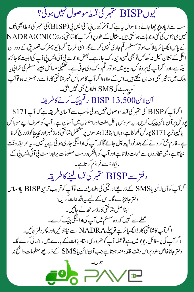 One of the most shared concerns among recipients is why their BISP September Payment Not Received. Numerous factors can cause delays. For example, if your CNIC is expired or blocked by NADRA, the system will not release the funds. Similarly, biometric mismatches at payment outlets can stop transactions. Sometimes, BISP reviews suitability, and if your profile is under review, payments may be held. Technical issues such for example system stoppage or outlay delays too underwrite. Additional reason could be an unregistered SIM, which stops you after getting SMS sum declarations.