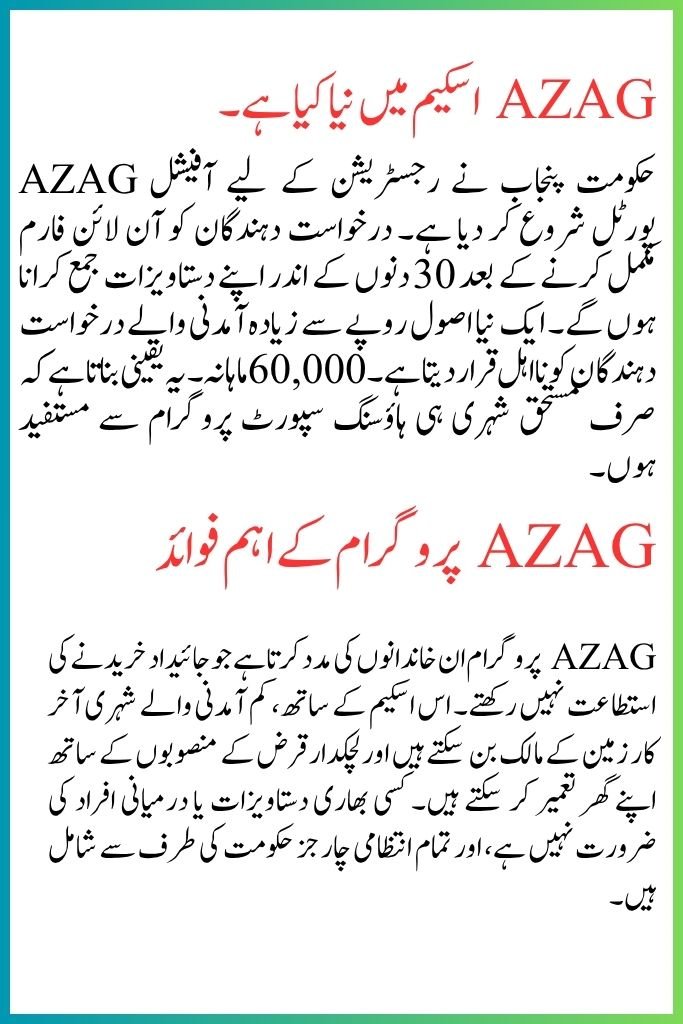 The government of Punjab has launched the official AZAG portal for registrations. Applicants must submit their documents within 30 days after completing the online form. A new rule disqualifies applicants with an income higher than Rs. 60,000 per month. This ensures that only deserving citizens benefit from the housing support program.