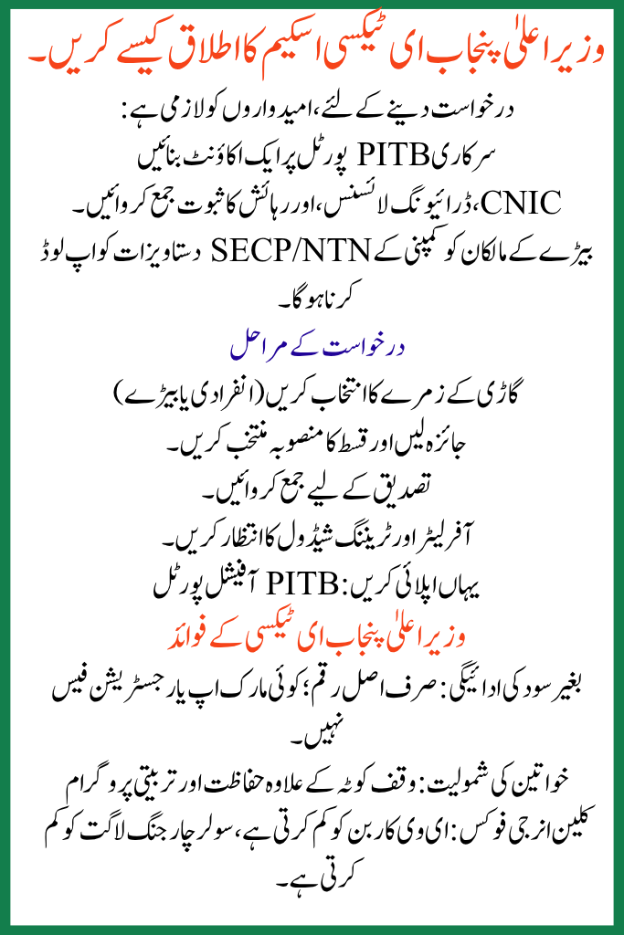 How to Apply CM Punjab e-taxi scheme