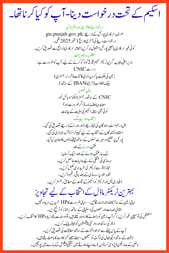 The CM Punjab Green Tractor Scheme Phase 2 is a subsidy program by the Punjab government that aims to help farmers buy modern tractors at reduced cost. Under the scheme: