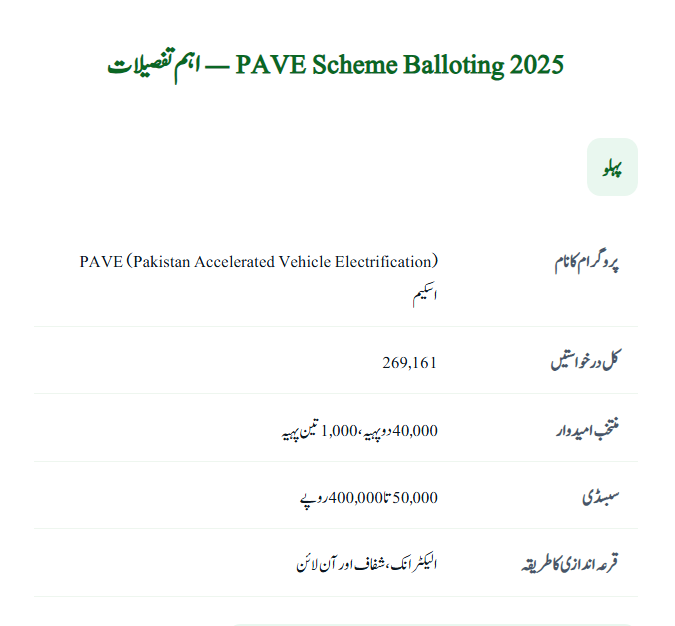 The PAVE Balloting Scheme 2025 marks a historic milestone for Pakistan. It is not just a subsidy scheme but a practical step toward creating a “Green Pakistan.” By making affordable and clean electric vehicles accessible to citizens, the program will not only ease daily travel but also strengthen the country’s economy.