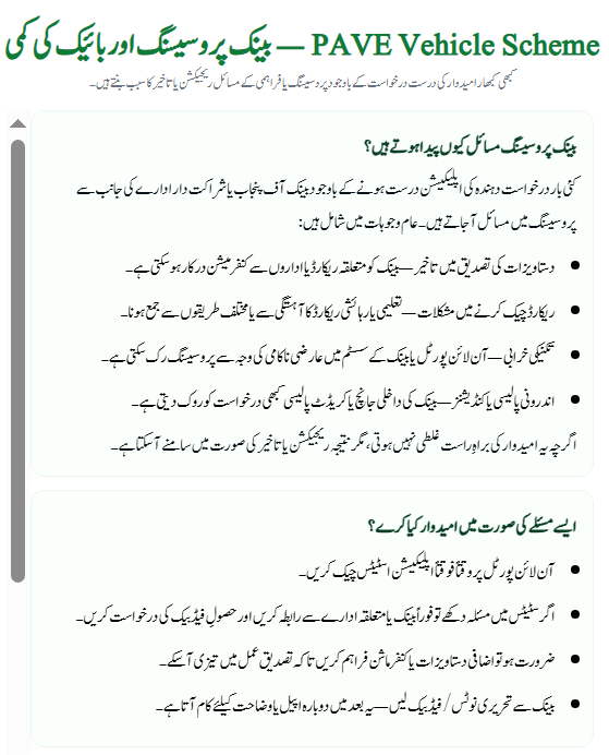 How Do Bank Processing Issues Affect the PAVE Vehicle Scheme?