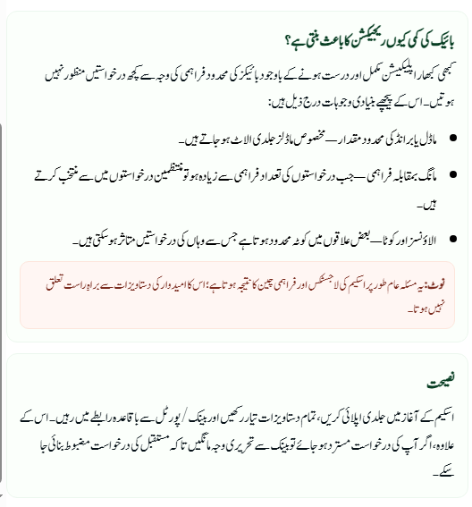Sometimes, applications get delayed or rejected due to issues at the partner bank’s side, especially the Bank of Punjab. These issues may include delays in verifying documents, problems in cross-checking records, or technical errors in the system.