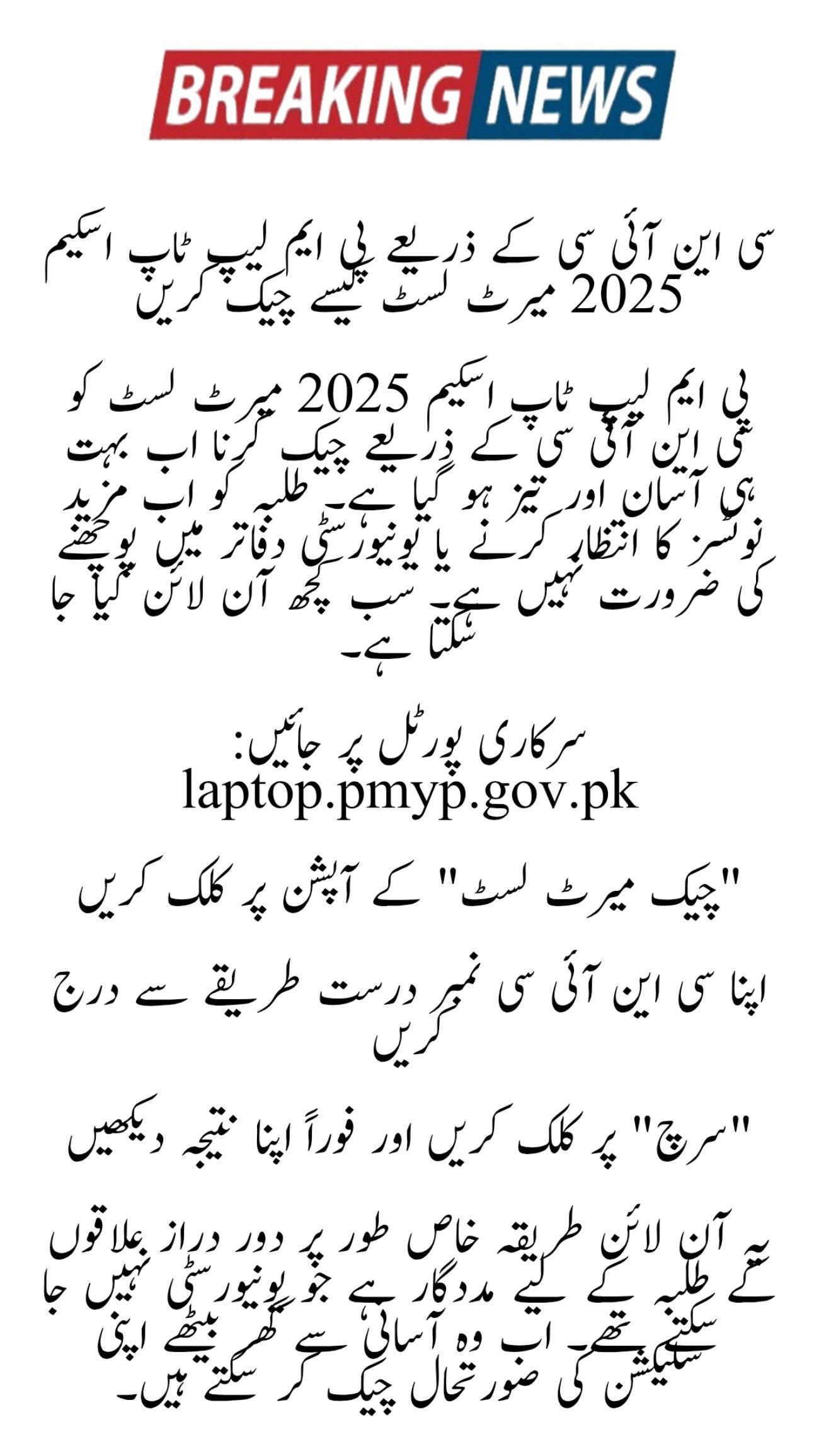 How to Check PM Laptop Scheme 2025 Merit List by CNIC
