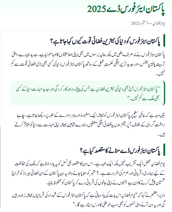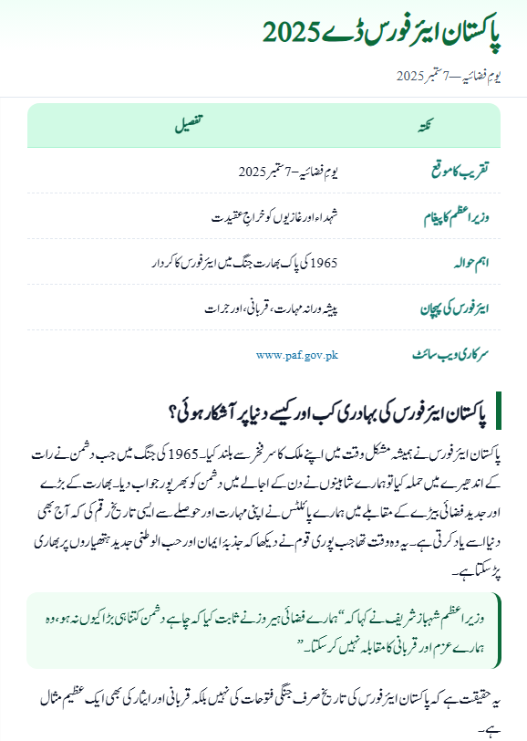Key Details – Pakistan Air Force Day 2025