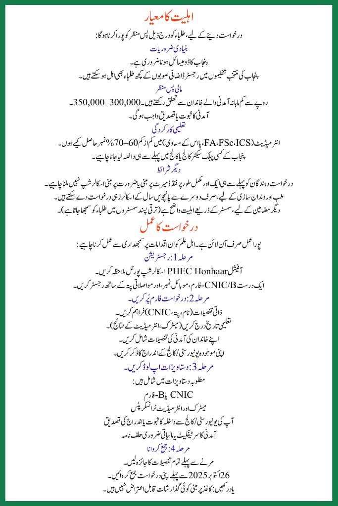 Program Name | Punjab Honhaar Merit-Based Scholarship Program