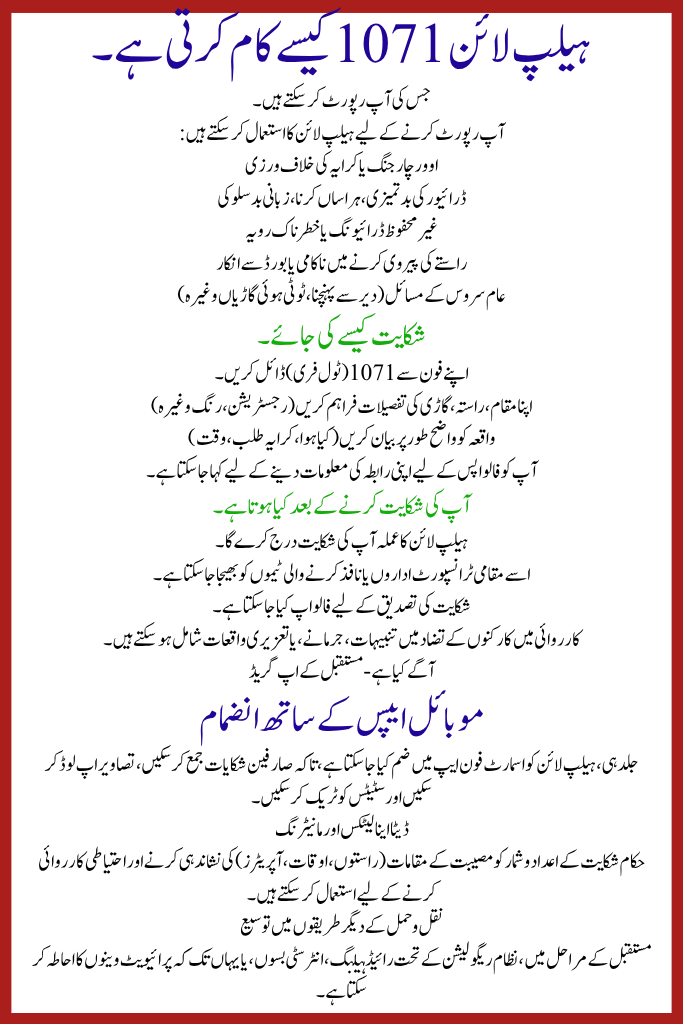 Read this article prudently, note down the process and tips — from now on, if you see overcharging or misbehavior on public transportation in Punjab, dial 1071 and report it. Your voice substances in rotating the system around.