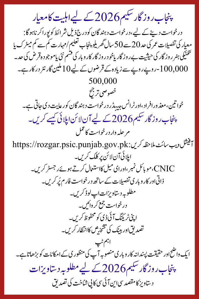 Eligibility Criteria for Punjab Rozgar Program 2026