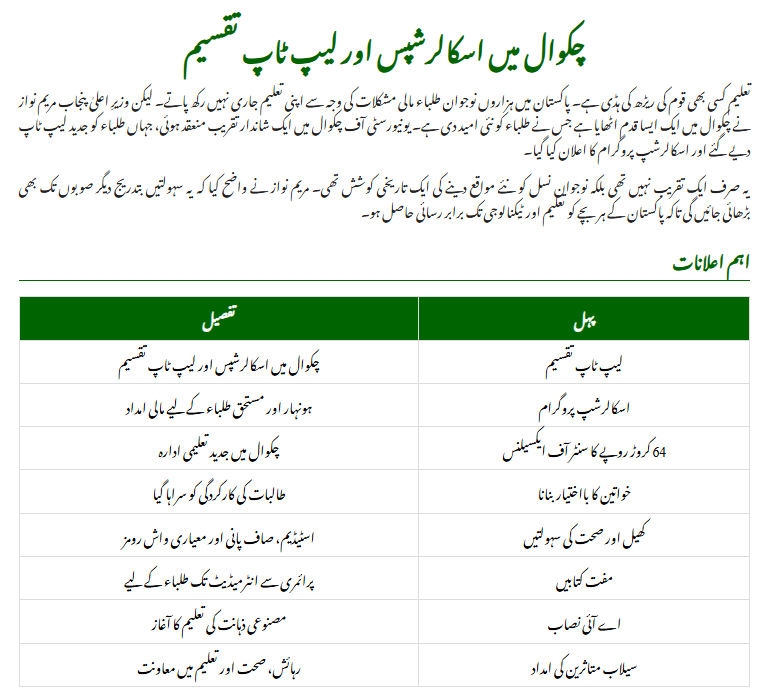 Big Opportunity: CM Punjab Maryam Nawaz Scholarships and Laptop Distribution in Chakwal 2025
